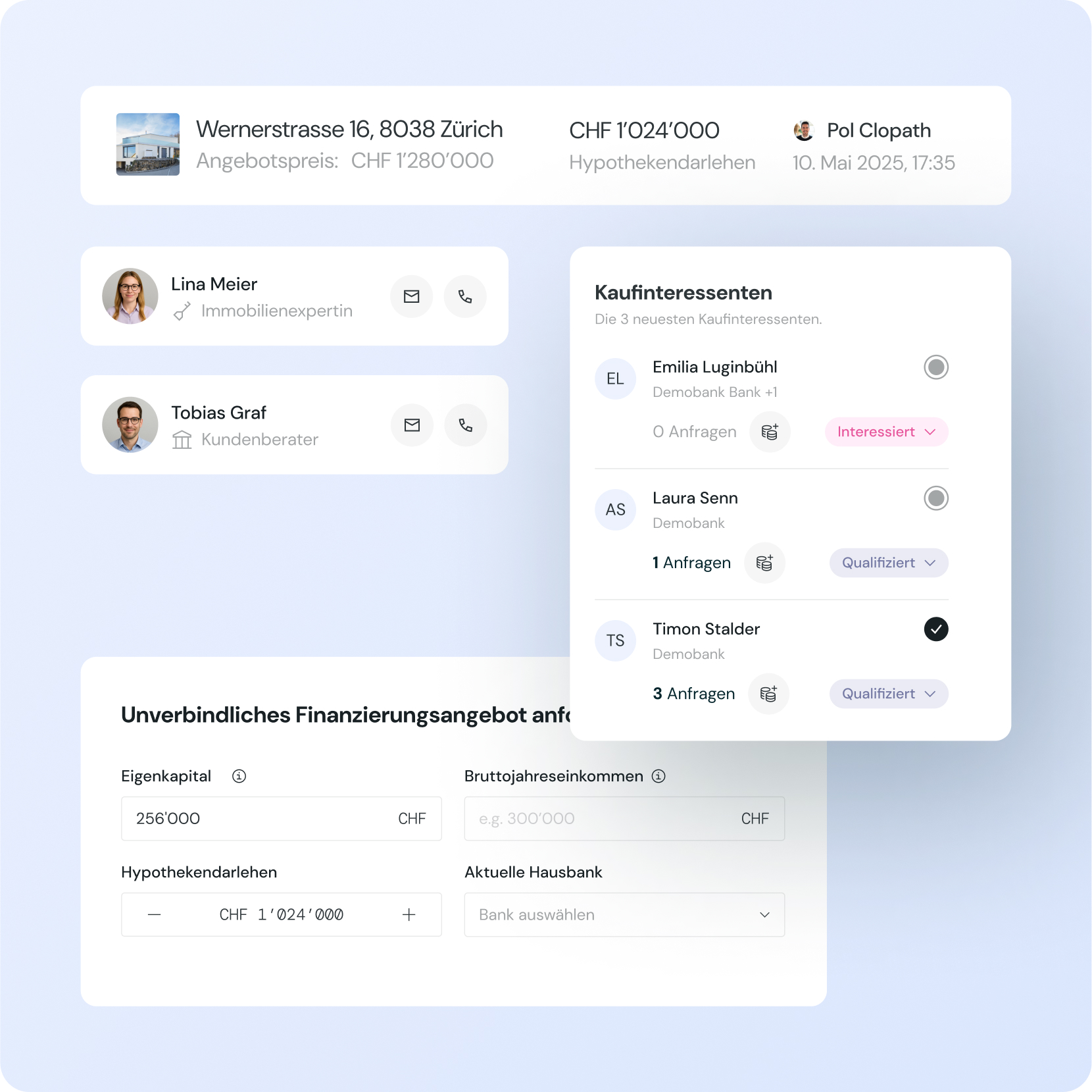 Sei Teil des gesamten Prozesses – vom Onboarding der Verkäuferschaft bis zur Finanzierung der Käufer:in. Unterstütze deine Kund:innen bei jeder finanziellen Entscheidung, nicht nur beim Abschluss einer Hypothek.